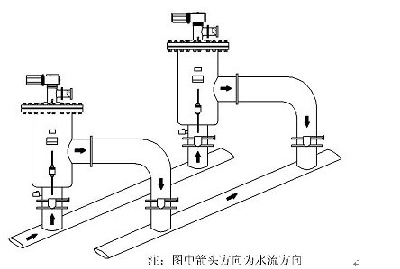 (3)自清洗過(guò)濾器應(yīng)安裝在需要保護(hù)的用水設(shè)備之前,并盡量靠近用水設(shè)備。